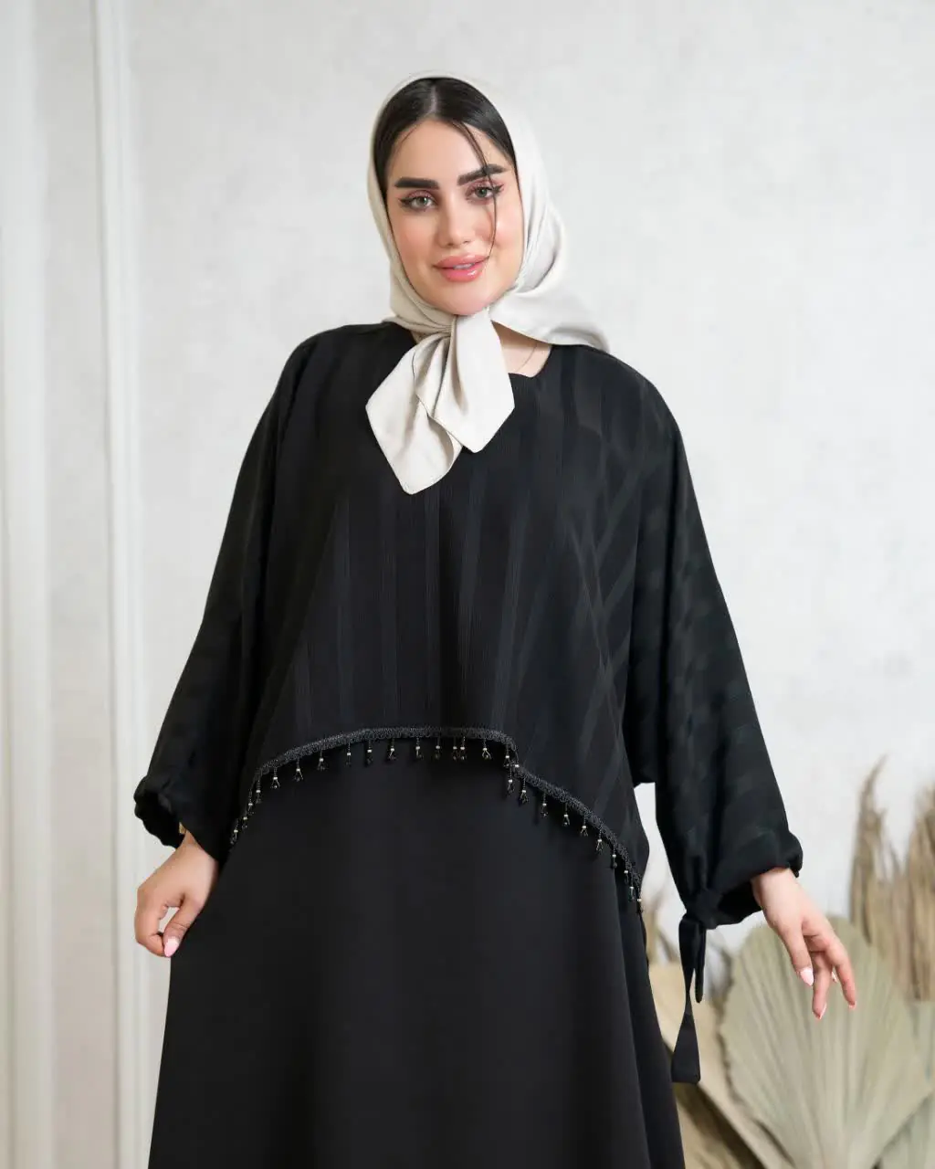 دورسینه : 115 ، قد آستین از یقه : 66 ، قد کراپ : 50 ، قد سارافون : 130 .