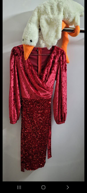 پیراهن مخمل دامن پولکی قرمز رنگ