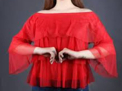 #بلوز آستین دار یقه گرد قرمز رنگ